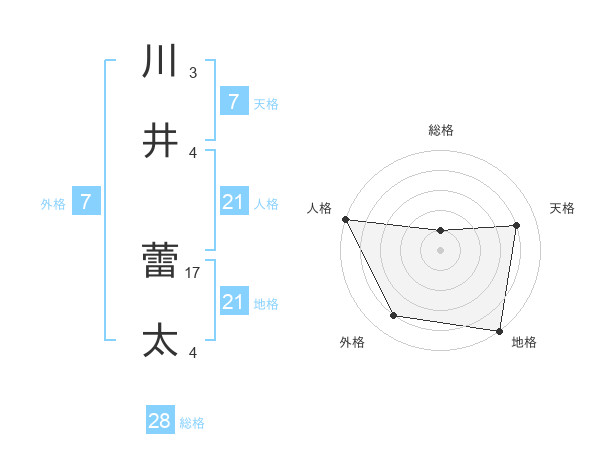 川井 蕾太さんの天格は7画の4点!
