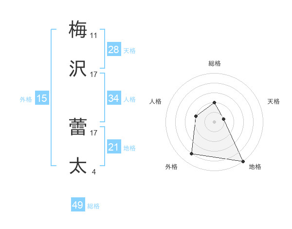 梅沢 蕾太さんの総格は49画の2点!