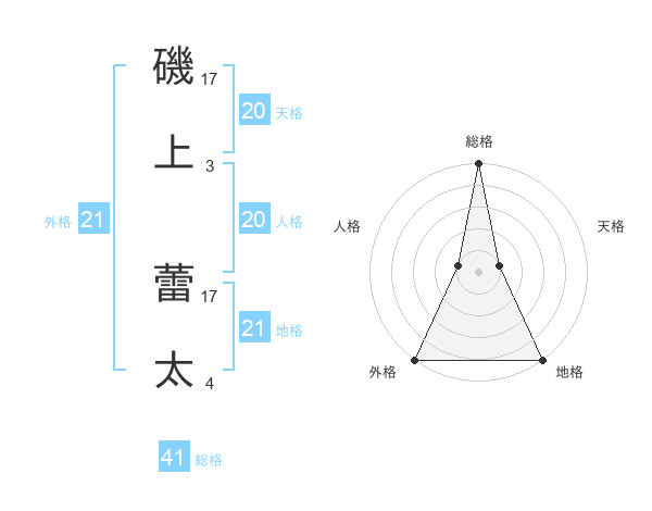 磯上 蕾太さんの外格は21画の5点!