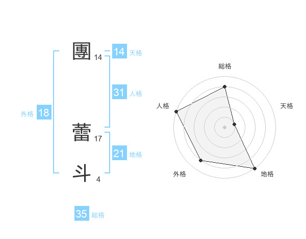 團 蕾斗さんを姓名の画数から五運を鑑定