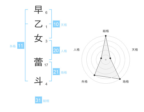 早乙女 蕾斗さんを姓名の画数から五運を鑑定