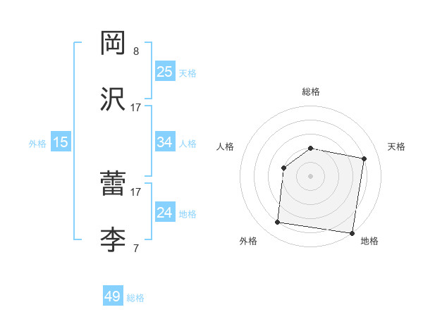 岡沢 蕾李さんを姓名の画数から五運を鑑定