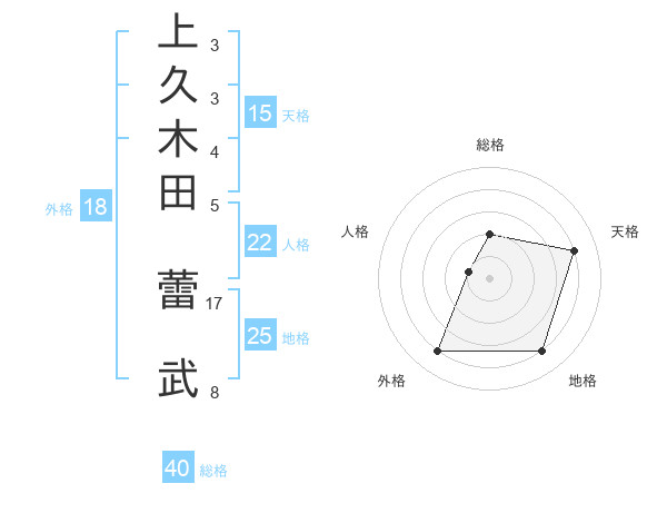 上久木田 蕾武さんを姓名の画数から五運を鑑定