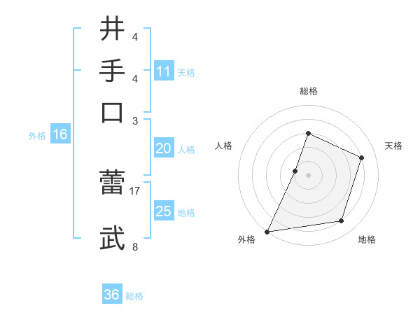 井手口 蕾武さんの外格は16画の5点!