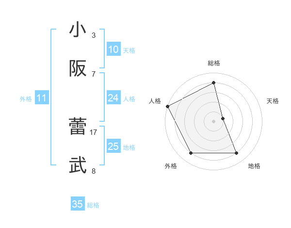 小阪 蕾武さんの総格は35画の4点!