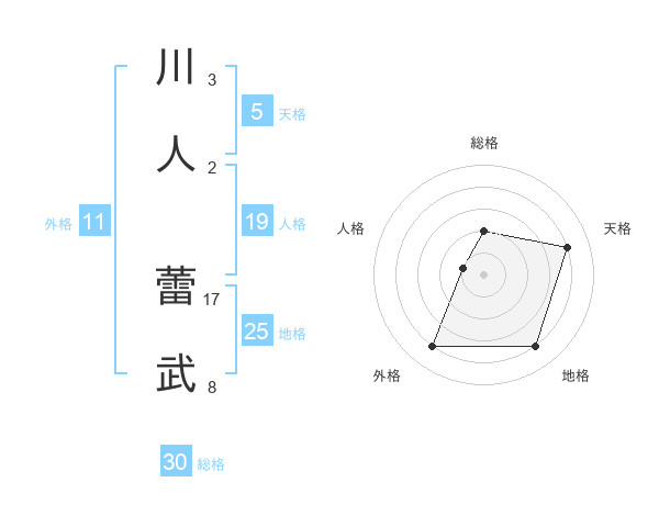 川人 蕾武さんの総格は30画の2点!