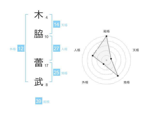 木脇 蕾武さんを姓名の画数から五運を鑑定