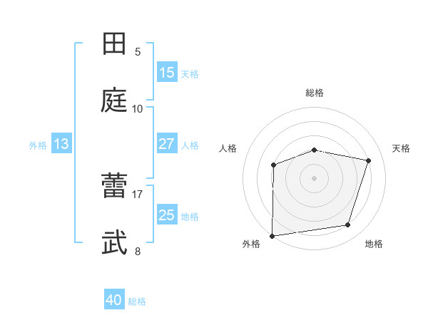 田庭 蕾武さんを姓名の画数から五運を鑑定