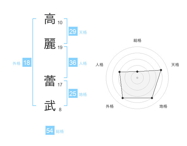 高麗 蕾武さんの総格は54画の1点!