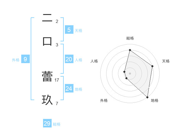 二口 蕾玖さんを姓名の画数から五運を鑑定