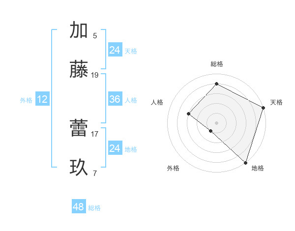 加藤 蕾玖さんの天格は24画の5点!