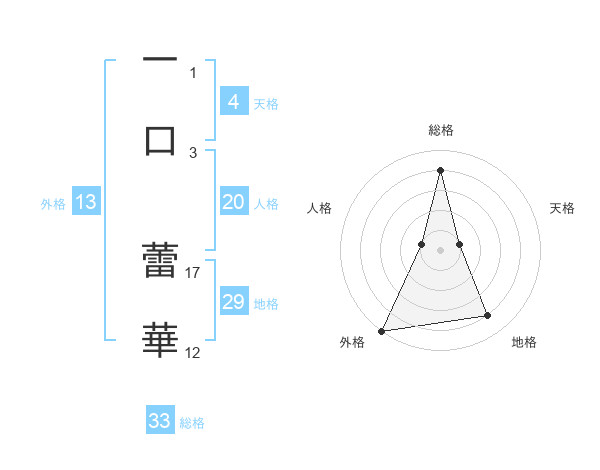 一口 蕾華さんを姓名の画数から五運を鑑定