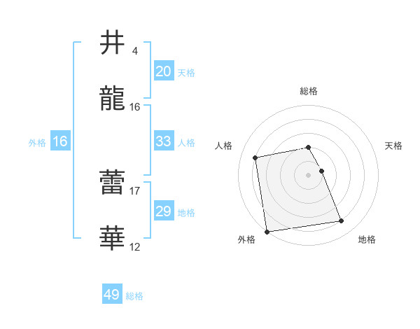 井龍 蕾華さんを姓名の画数から五運を鑑定