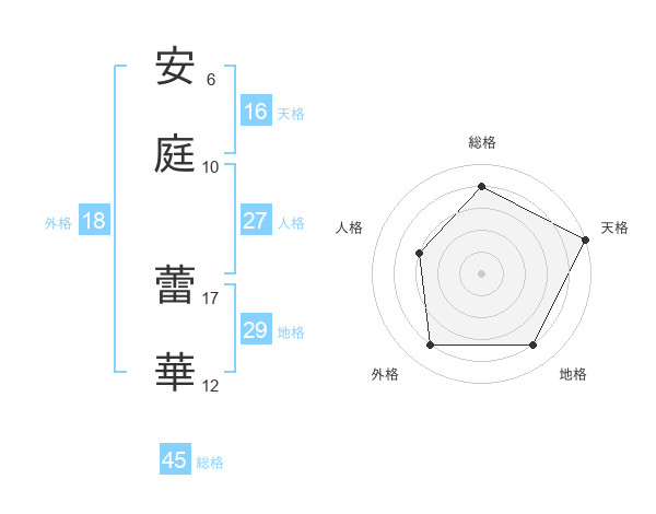 安庭 蕾華さんの総格は45画の4点!