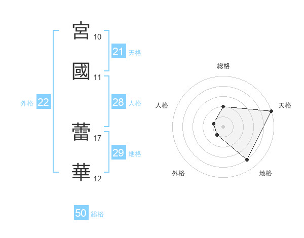 宮國 蕾華さんを姓名の画数から五運を鑑定