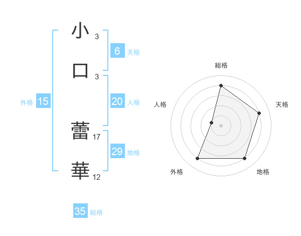 小口 蕾華さんの総格は35画の4点!