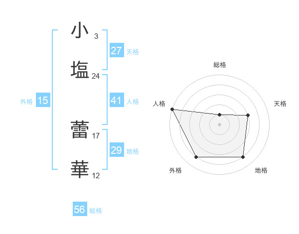 小塩 蕾華さんの地格は29画の4点!