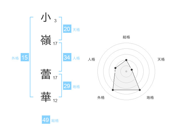 小嶺 蕾華さんを姓名の画数から五運を鑑定