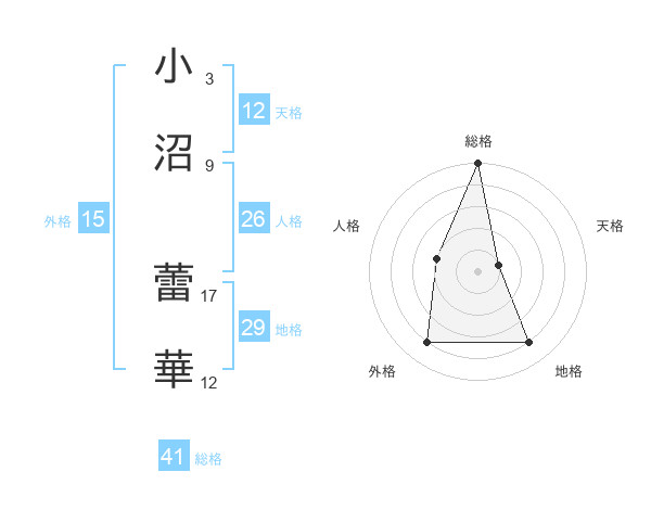 小沼 蕾華さんを姓名の画数から五運を鑑定