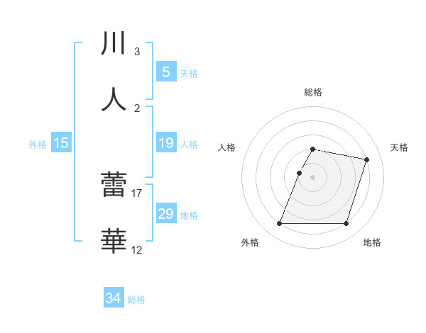 川人 蕾華さんを姓名の画数から五運を鑑定