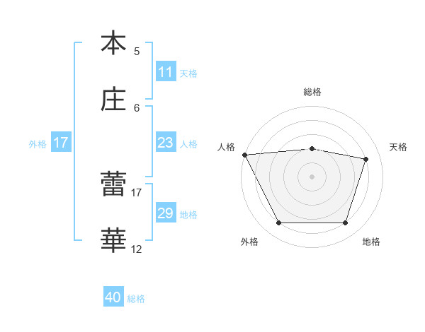 本庄 蕾華さんの総格は40画の2点!