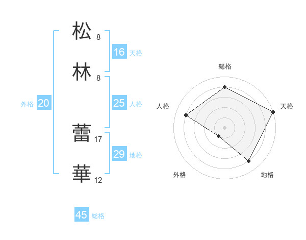 松林 蕾華さんを姓名の画数から五運を鑑定
