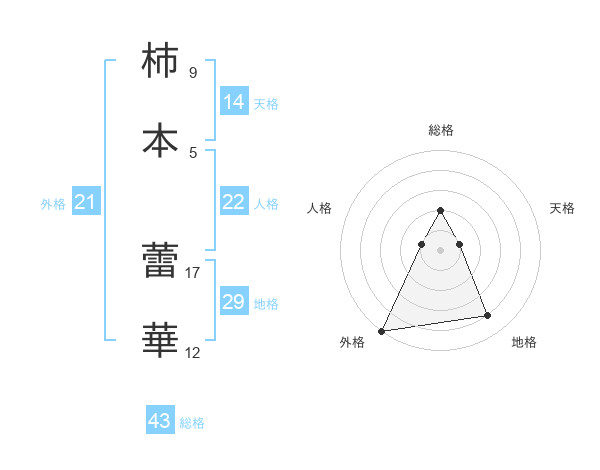 柿本 蕾華さんを姓名の画数から五運を鑑定