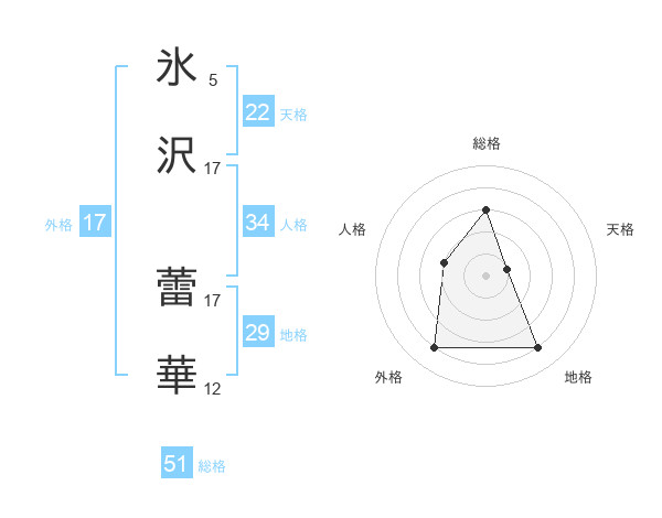 氷沢 蕾華さんの総格は51画の3点!