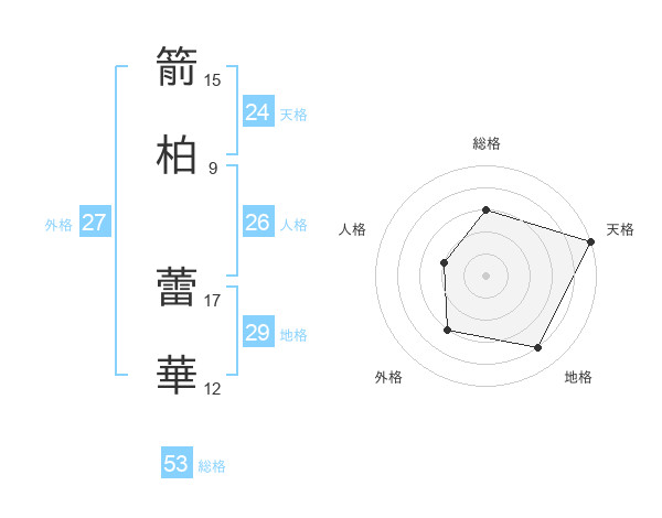 箭柏 蕾華さんの総格は53画の3点!