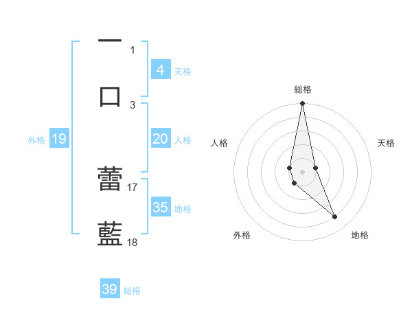一口 蕾藍さんの総格は39画の5点!
