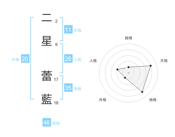 二星 蕾藍さんを姓名の画数から五運を鑑定