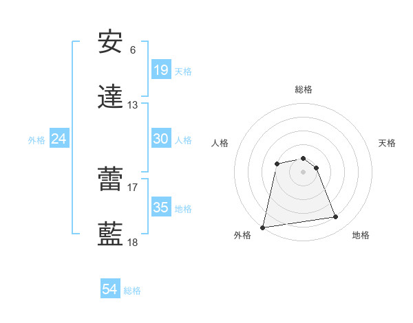 安達 蕾藍さんを姓名の画数から五運を鑑定