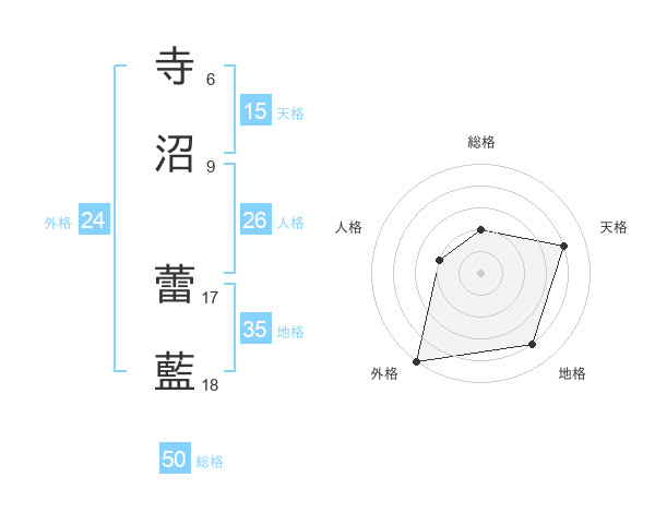 寺沼 蕾藍さんの外格は24画の5点!