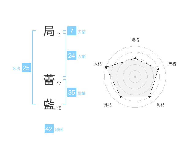 局 蕾藍さんの外格は25画の4点!