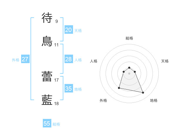 待鳥 蕾藍さんを姓名の画数から五運を鑑定