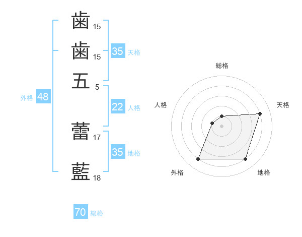 歯歯五 蕾藍さんを姓名の画数から五運を鑑定