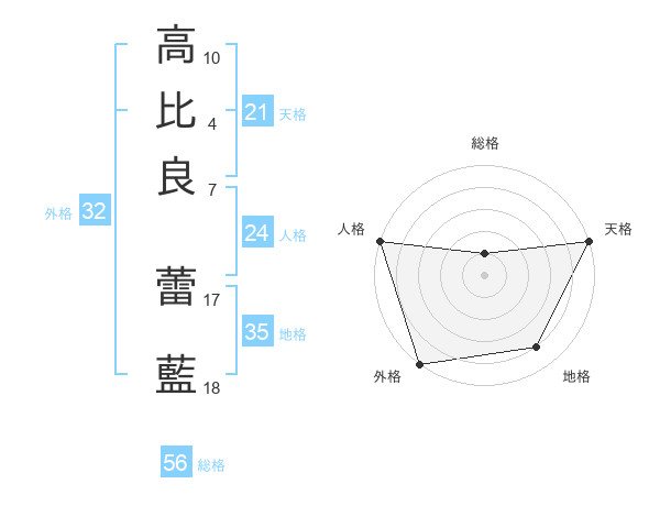 高比良 蕾藍さんを姓名の画数から五運を鑑定