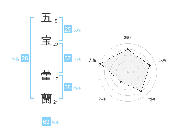 五宝 蕾蘭さんの総格は63画の4点!