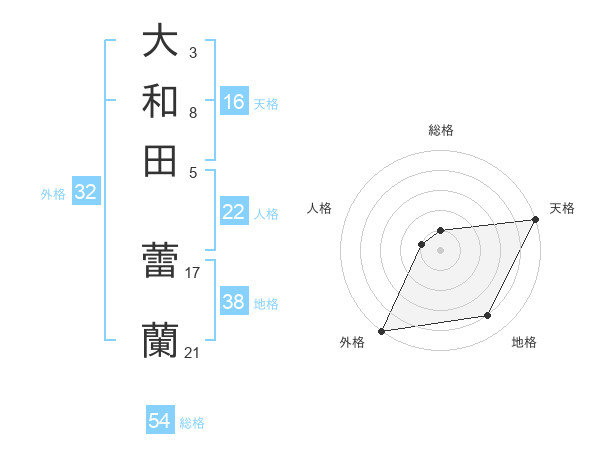 大和田 蕾蘭さんを姓名の画数から五運を鑑定