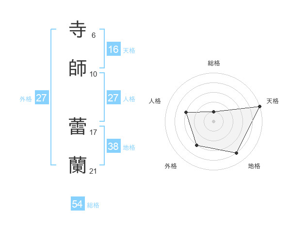 寺師 蕾蘭さんの天格は16画の5点!