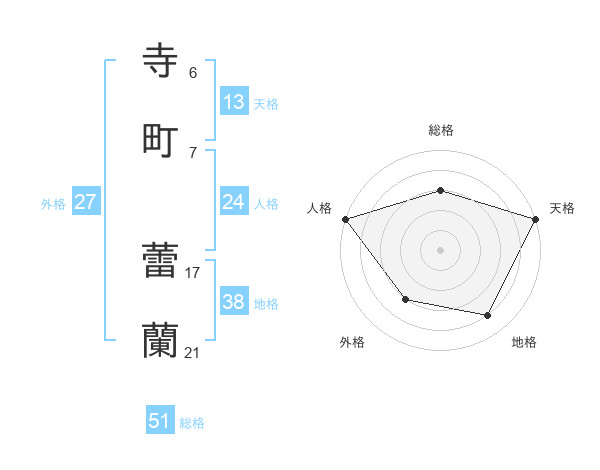 寺町 蕾蘭さんの総格は51画の3点!