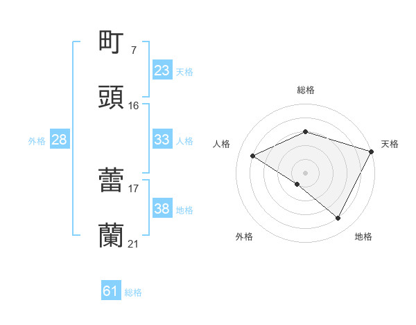 町頭 蕾蘭さんを姓名の画数から五運を鑑定
