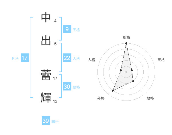 中出 蕾輝さんを姓名の画数から五運を鑑定