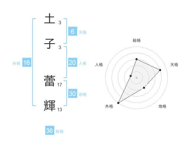 土子 蕾輝さんを姓名の画数から五運を鑑定