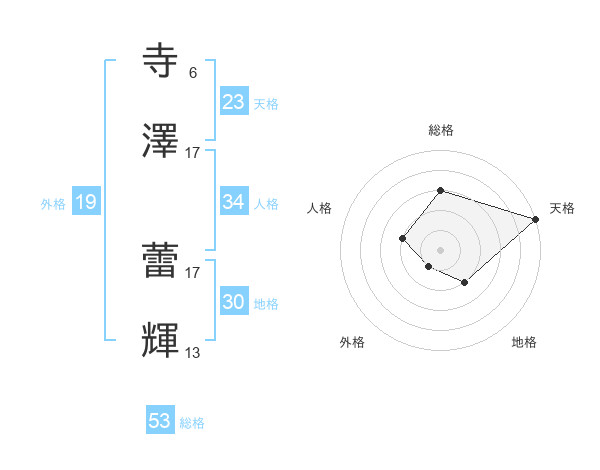 寺澤 蕾輝さんの外格は19画の1点!