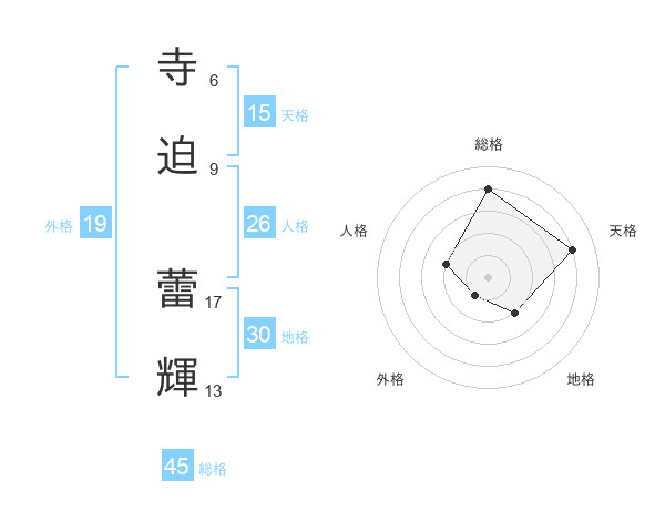 寺迫 蕾輝さんの総格は45画の4点!