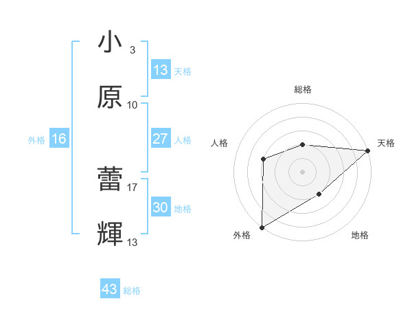 小原 蕾輝さんの天格は13画の5点!