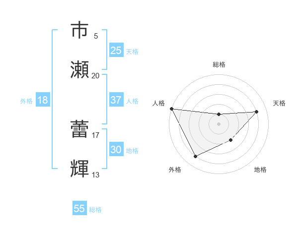 市瀬 蕾輝さんの総格は55画の1点!