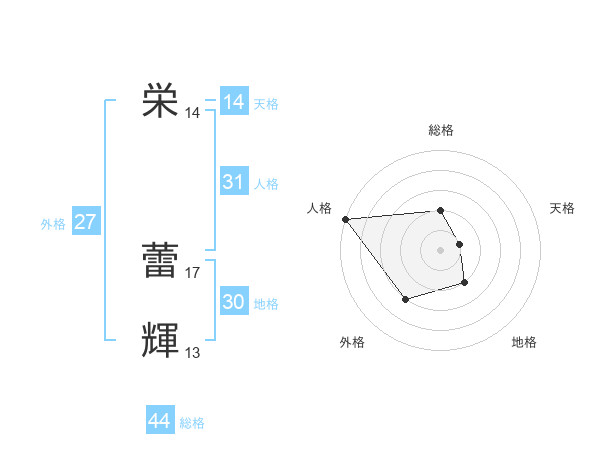 栄 蕾輝さんの総格は44画の2点!