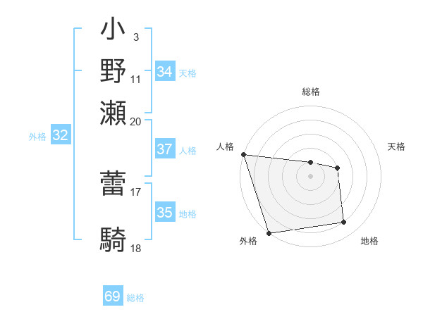 小野瀬 蕾騎さんを姓名の画数から五運を鑑定